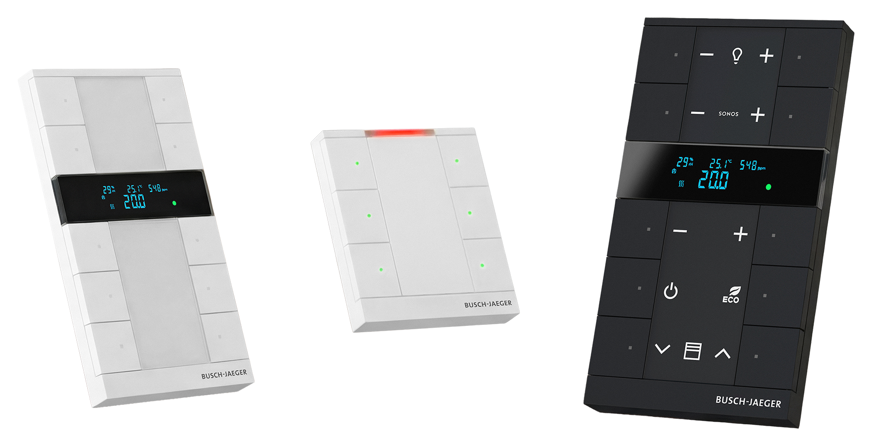 Mit Busch-IQTouch und Busch-Tenton® 2.0 positioniert Busch-Jaeger KNX-Bedienung als montagefreundliche Standardlösung für Neubau und Modernisierung. Hoher Funktionsumfang – bis zu 240 Funktionen –, integrierte SIP-Türkommunikation und CO₂-Überwachung sind ohne zusätzliche Einbaugehäuse realisierbar.