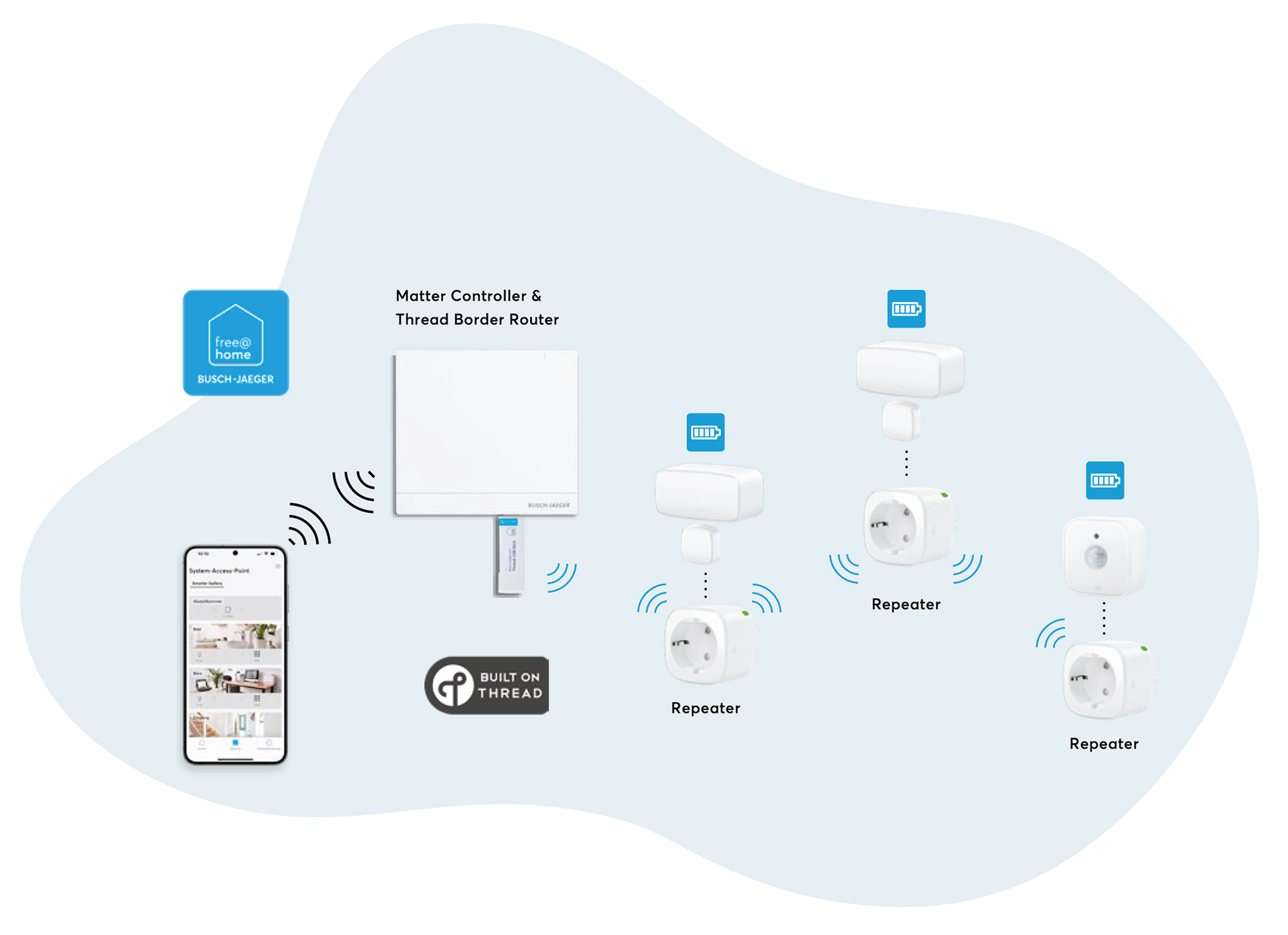 Busch-Jaeger bringt frischen Wind ins Smart Home: Mit dem neuen Matter Controller Addon und dem neuen Matter Thread USB-Stick für den System Access Point wird die Integration von Matter-fähigen Geräten in das Smart-Home-System Busch-free@home® so einfach wie nie zuvor. Der große Vorteil: Es ist kein Apple HomePod oder Amazon Alexa mehr nötig, um die Funkverbindung über Thread herzustellen. Des Weiteren können über das Addon nun auch reine Matter-over-WiFi-Geräte rein über Busch-free@home® integriert werden, auch ohne Thread USB-Stick. Die Inbetriebnahme erfolgt komplett über die Busch-free@home® Next App – komfortabel, drahtlos und aus einer Hand.