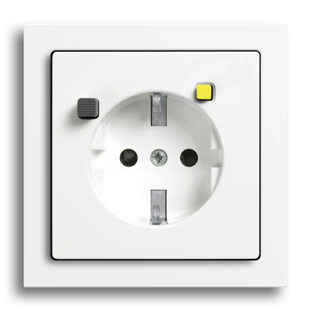 Diese Steckdose verfügt über einen erhöhten Berührungsschutz (VDE 0664) und einen FI-Schalter. Dieser erkennt ungewöhnliche elektrische Ströme und unterbricht die Stromversorgung, um Stromschläge zu verhindern. Dabei bleibt die Betriebssicherheit bestehen, denn nur die Steckdose und nicht Stromkreis sind nach dem Auslösen ohne Spannung.