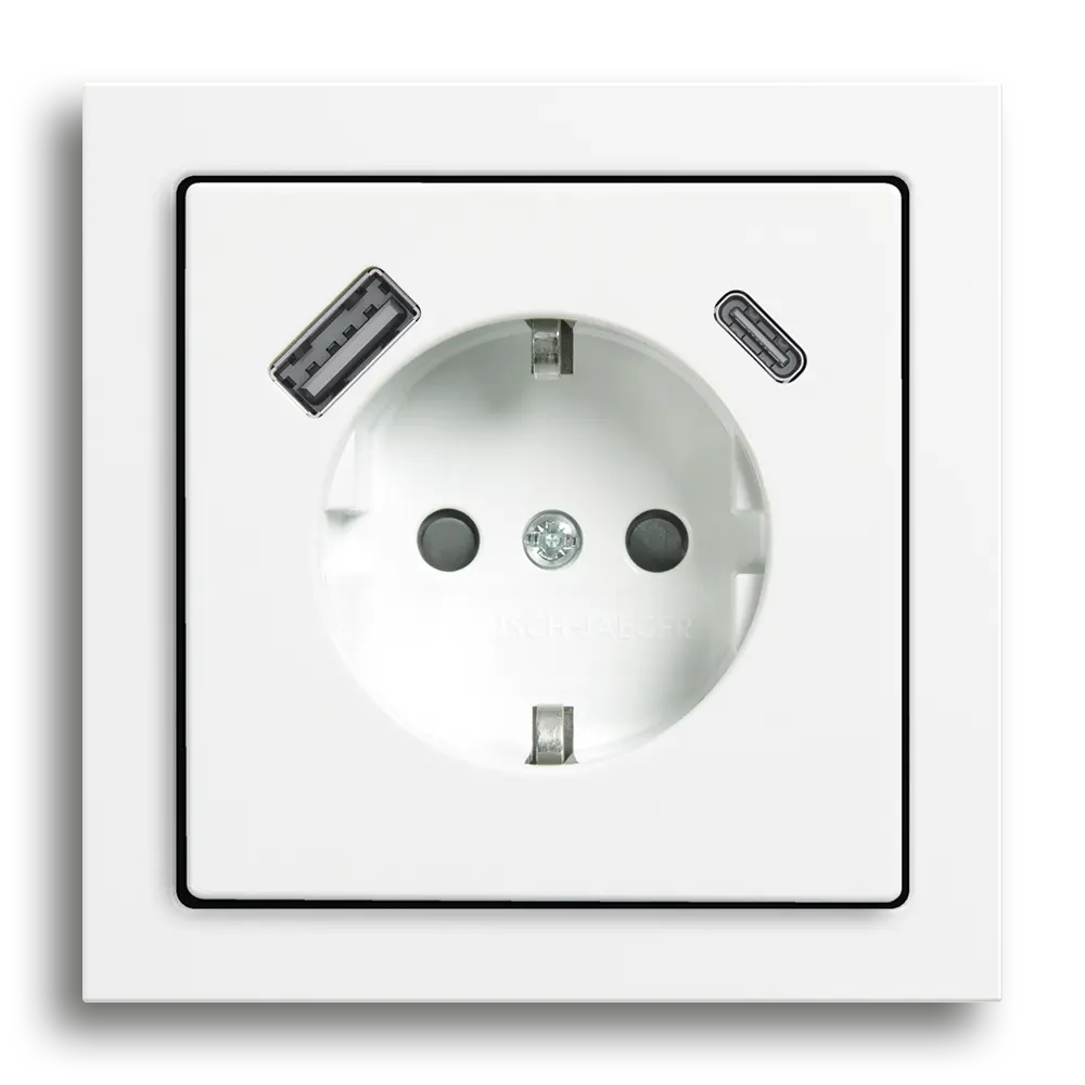 Die SCHUKO® USB-Steckdose bietet dir zwei in einem: eine gewöhnliche Steckdose und zwei USB-Anschlüsse. So kannst du z.B. dein Smartphone oder Tablet während des Strombetriebs an einem festen Platz aufladen. Die Steckdose ist sowohl mit USB-C, als auch mit USB-A Anschlüssen erhältlich.