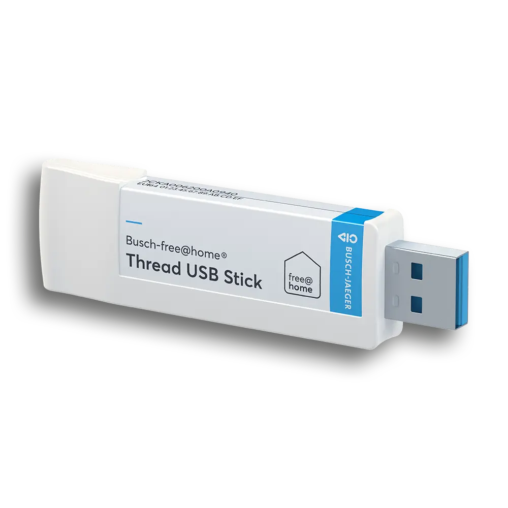 Mit dem Thread USB-Stick machst du deinen System Access Point 2.0 im Handumdrehen fit für Matter und Thread. So integrierst du kompatible Matter-Geräte wie Eve Energy, Eve Motion oder Eve Door & Window nahtlos in dein Busch-free@home® System.
