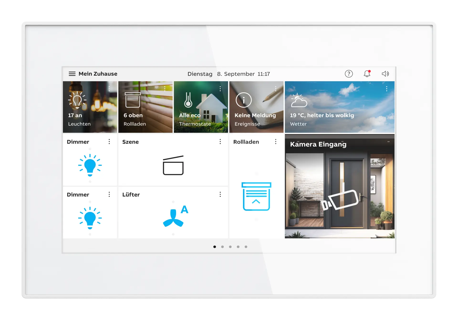 Mit einem Smarter Home Panel in deinem Zuhause hast du eine zentrale Anlaufstelle, um dein Busch-free@home® System zu steuern. Dank der Panels kannst du das gesamte Haus oder einzelne Räume zentral steuern und so zum Beispiel die Lichter in deinem Zuhause ausschalten, sobald du das Haus verlässt oder wenn du nach Hause kommst, per Fingertipp deine persönliche Willkommens-Szene aktivieren. Unsere Smarter Home Panels gibt es in unterschiedlichen Farben und Größen, wobei die Bedienoberfläche der Geräte individuell an deine Bedürfnisse angepasst werden kann.